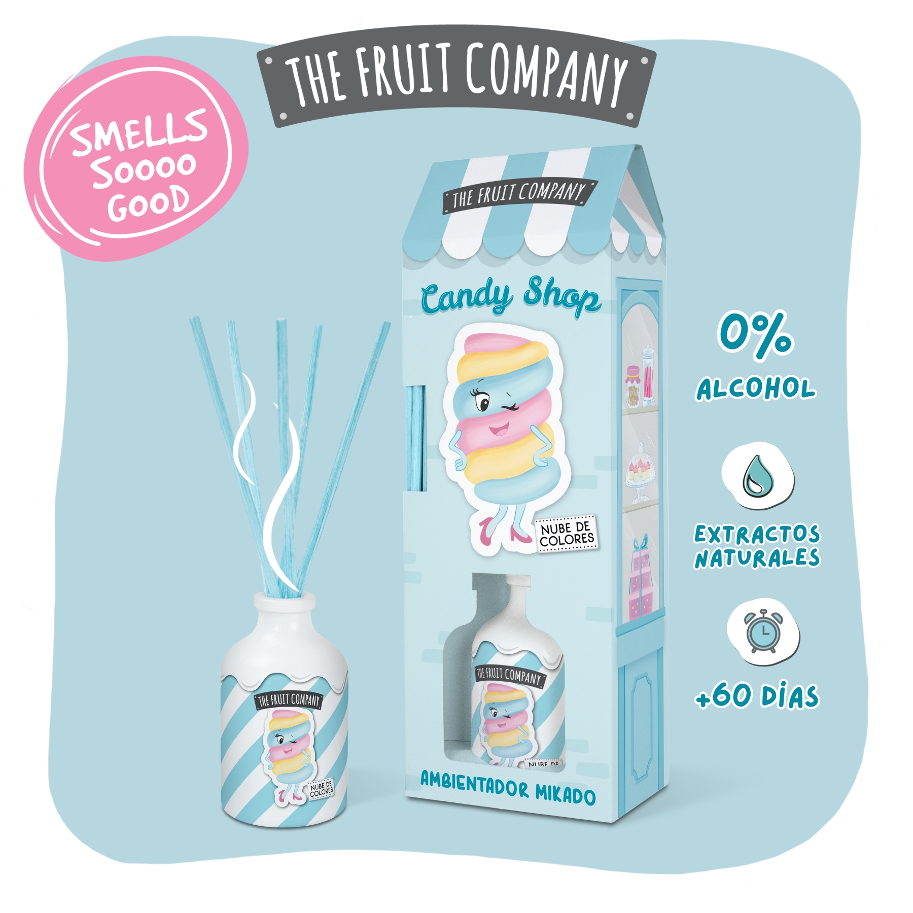 ¡Da la bienvenida a tu hogar al universo dulce de Candy Shop! Con el Ambientador Mikado Nube de Colores Candy Shop The Fruit Company, tu hogar se llenará de una deliciosa fragancia durante más de 60 días. Con extractos naturales y 0% alcohol, su ambientación constante e increíble aroma serán como un paseo mágico por un mundo lleno de dulces y golosinas. ¡Prepárate para sumergirte en un arcoíris de aromas que te alegrarán el día y te hará sentirte en las nubes!