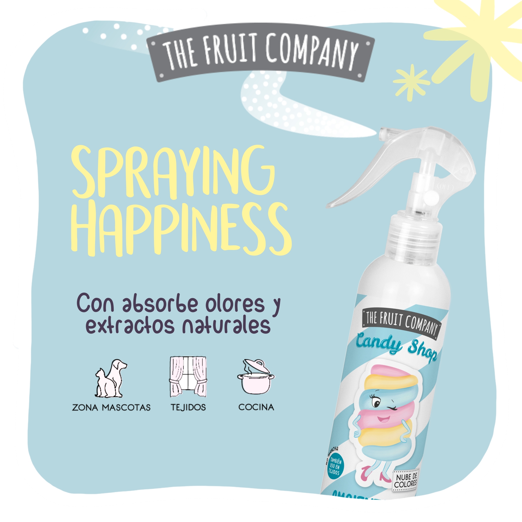 ¡Dale a tu hogar un toque dulce y fresco con el Ambientador Spray Nube de Colores de The Fruit Company! Con su fragancia irresistible, este spray mágico de 200 ml es perfecto para eliminar toooodos los malos olores. ¡Lo mejor de todo es que no mancha los tejidos!