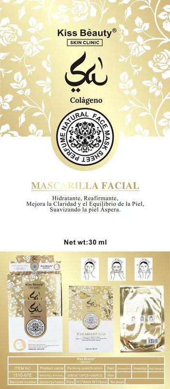 Mascarilla facial con colágeno actúa contra el envejecimiento, hidratando y aliviando la piel seca, combatiendo líneas de expresión y arrugas, iluminando la tez, promoviendo la elasticidad de la piel para una piel más firme, equilibrando y restaurando la barrera de hidratación de la piel.