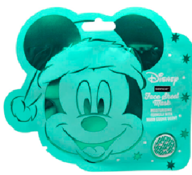 Mascarilla facial hidratante, con aroma a galleta y diseño de Mickey y motivos navideños.
