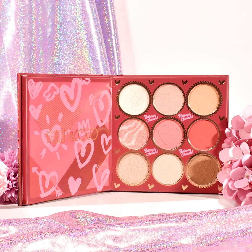 - 9 iluminadores y coloretes faciales en una variedad de tonos luminosos.