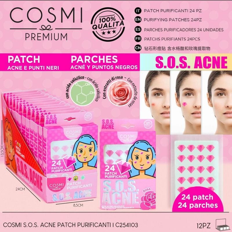 Lucha contra las imperfecciones con los parches faciales purificantes 24 DIAMANT SOS de Cosmi Premium, especialmente diseñados para proporcionar un tratamiento específico y rápido contra el acné y los puntos negros. Estos parches eficaces y prácticos están enriquecidos con ingredientes naturales y purificantes, que ayudan a limpiar los poros obstruidos y prevenir futuras imperfecciones.